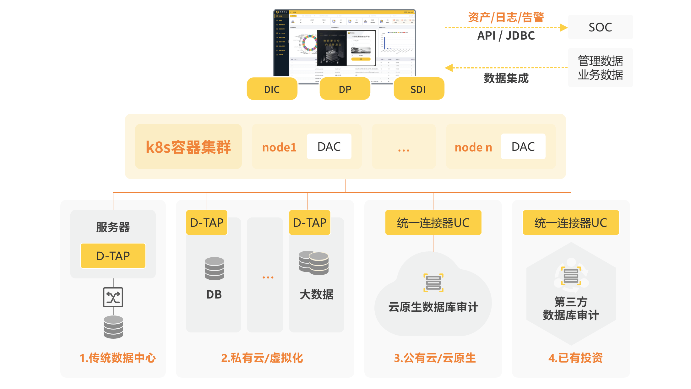 数据库作为承载企业核心数据资产的关键载体,其安全性不仅是业务陆续在性的基石,更是合规监管的底线要求。然而,传统数据库安全审计方案因技术架构陈旧,已难以适配现代数据生态的复杂性:一方面,企业IT架构向云原生、分布式快速演进,另一方面, 云原生数据库、国产化数据库、大数据引擎等多元化技术栈广泛应用。此外,新的数据安全法规与行业标准对数据操作可追溯性、敏感数据保护提出了更高要求,也使得传统 数据库安全审计产品应对乏力。